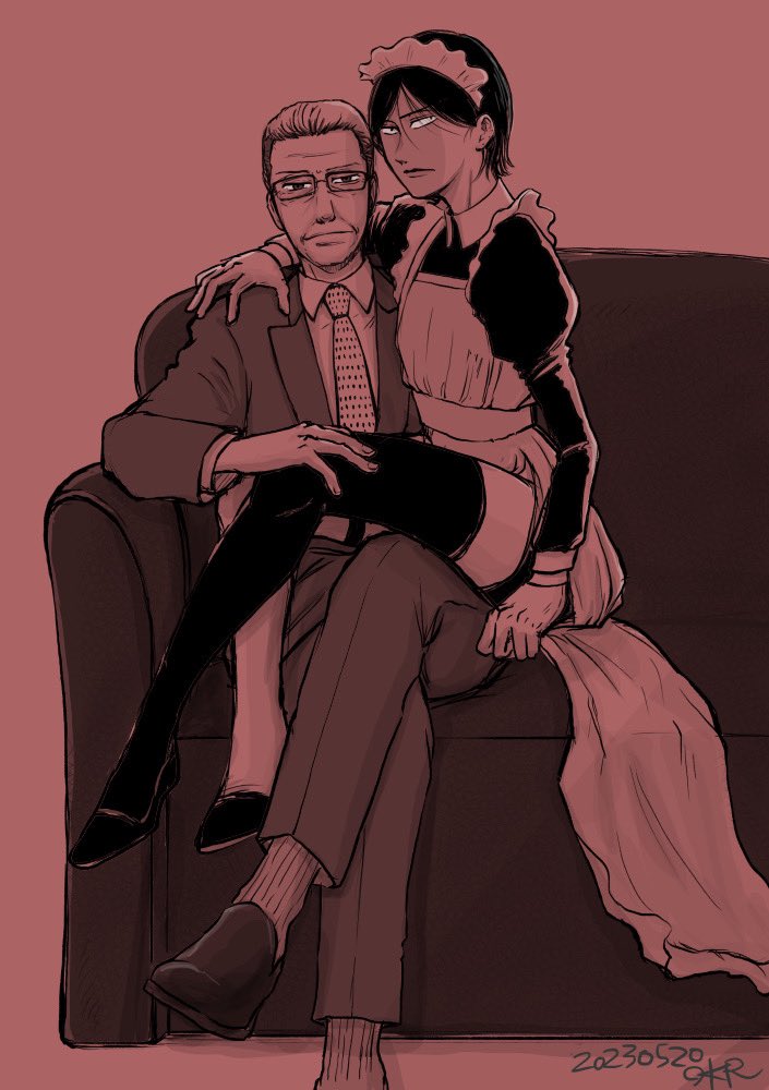 6 20 子の見守りをしつつシャチョとメイド描きました 23/05/20 20:51