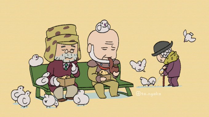 歳の数だけ豆を食べるおじいちゃんたち🕊️ #JOJO版深夜の真剣お絵描き60分一本勝負 お題「老師トンペティ」「3~4部ジョセフ」「明負悟」