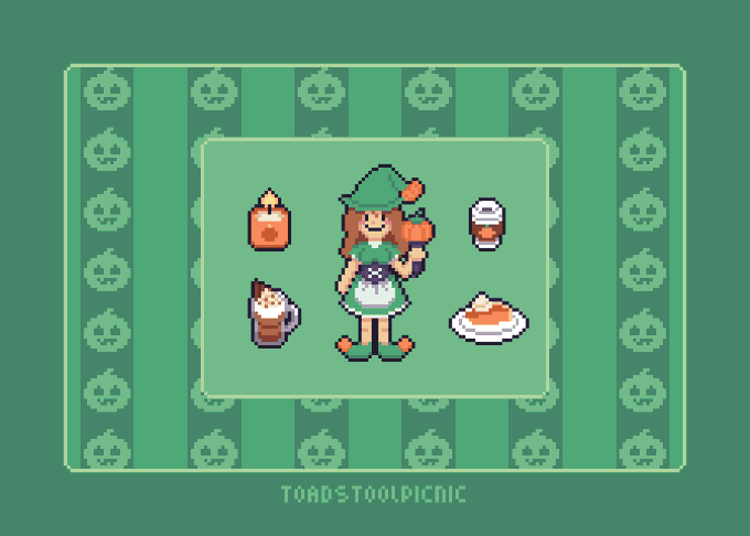 Day 3 of #mabsdrawlloweenclub2021 is Witch. The Pumpkin Spice Witch is ready for your order! #pixelart #pixelartist