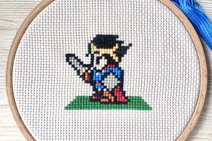 【#PixelHeroesFanart 】 ピクセル ヒーローズXのブレイブ! クロスステッチという ドット絵の刺繍です🪡🧵 ハンドメイドでコンペに参加です! よろしくお願いします🎀 @pixelheroes_nft