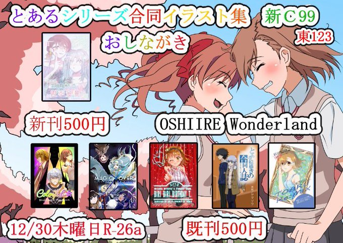 OSHIIRE wonderland 2022/12/30 金曜 東 “ホ”30a コミケ新c101お品書き とあるシリーズ合同誌 500円頒布予定 表紙 雨音@Lasteratorさん 裏表紙 クロノヤ@Kuronoya50さんです よろしくお願いします #c101 #コミックマーケット101 #とある魔術の禁書目録 #とある科学の超電磁砲