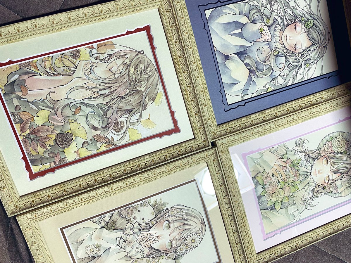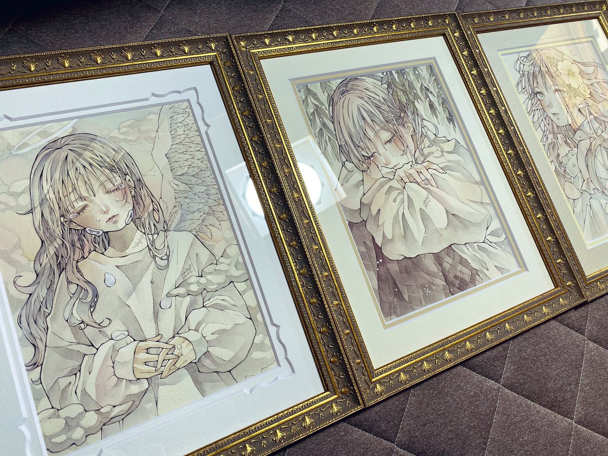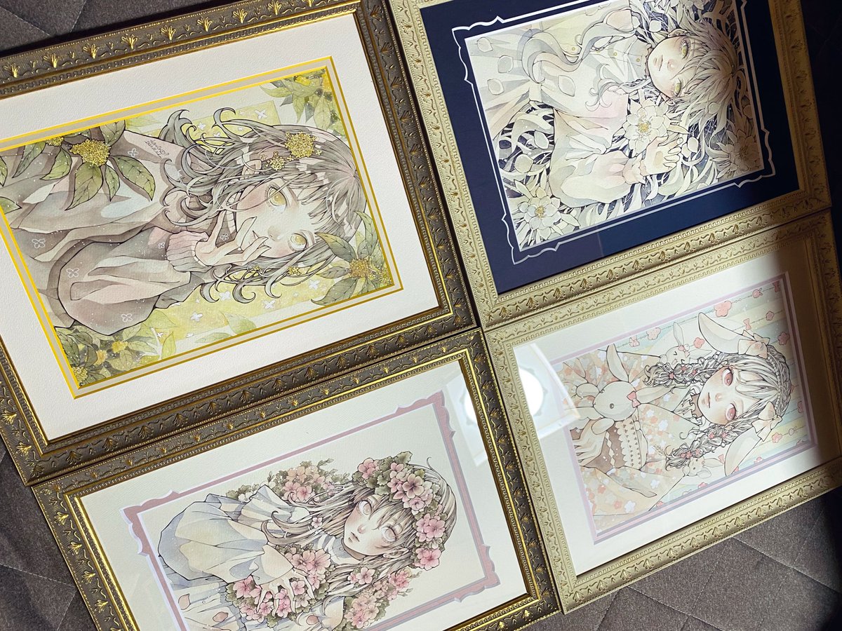 名古屋個展に連れていく子達だよ🫶 大きい原画は全部で11点! ミニ原画も連れてく予定〜! 額装めちゃくちゃ可愛い🥹💕