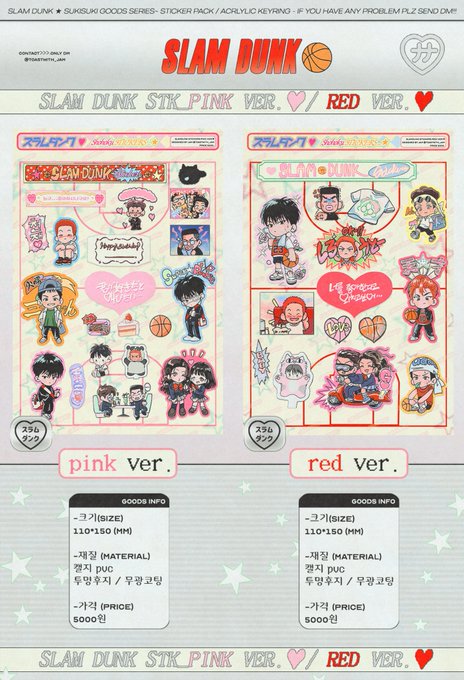 RT❤] * 𝓢𝓛𝓐𝓜 𝓓𝓤𝓝𝓚 𝓢𝓤𝓚𝓘𝓢𝓤𝓚𝓘 𝓖𝓞𝓞𝓓𝓢 𝓢𝓔𝓡𝓘𝓔𝓢 ★ * (⏰4/30 21:30~5/01 23:59) 슬램덩크 스티커,키링 재고 판매 폼입니다. RT 해주신 2분께 원하시는 굿즈 보내드려요 문의는 DM으로만 받습니다. (모든 수량 소진 시 조기 종료 합니다) 🍰윗치폼: url.kr/d1cjb9