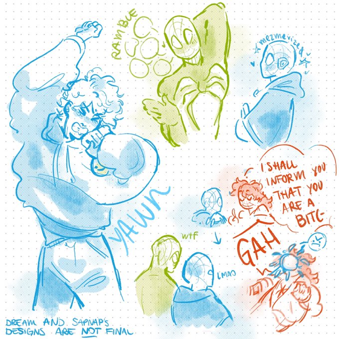 there he is!! + some doodles of him with Dream and sap inthe thread #georgenotfoundfanart #spidermanintothespiderverse #SpiderManAcrosstheSpiderVerse #spidersona @GeorgeNootFound