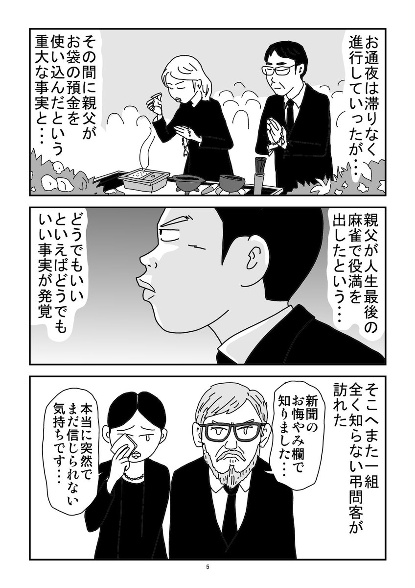 #親父がウォーウォーオー 5 葬式って本人が諸々決めるのが一番なんだけど、居ないんだから仕方ない。 #晴天のヘキレキ #親の葬儀