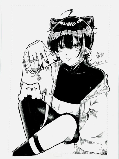 2 27 #オリジナル #コピック #イラスト 「にやーん」 22/10/14 21:17