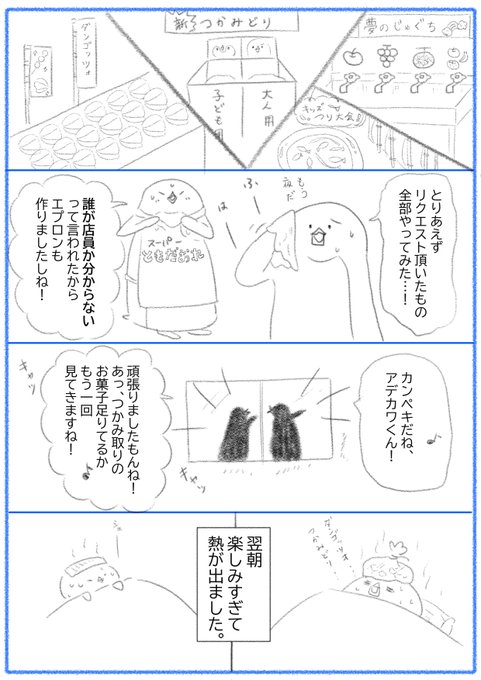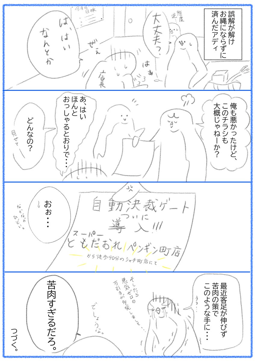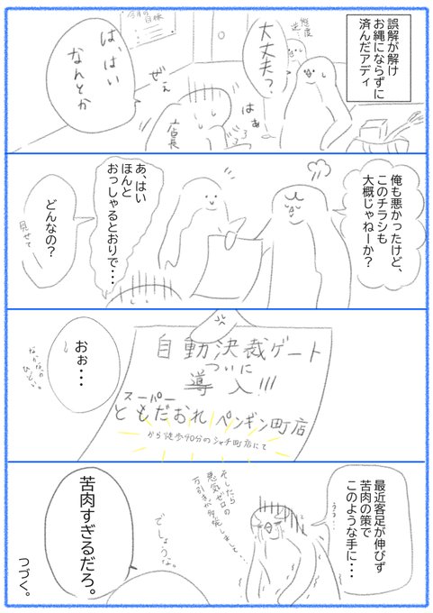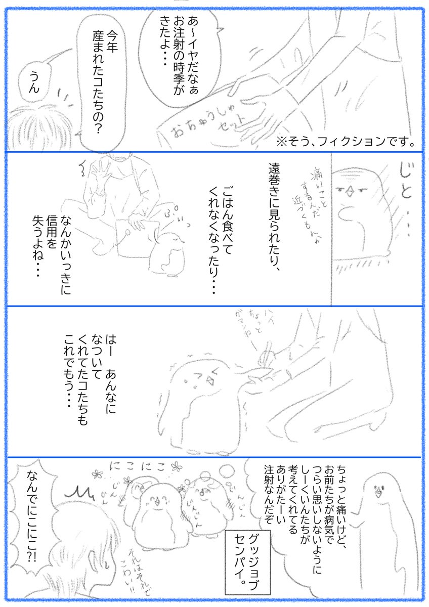 ワクチン接種前後に必要なものを買い出しに行くため、今日は早めにUP😊 水とポカリ、ゼリーとかでいいんだろうか。。 #ペンギン #イラスト好きな人と繋がりたい #漫画が読めるハッシュタグ #漫画