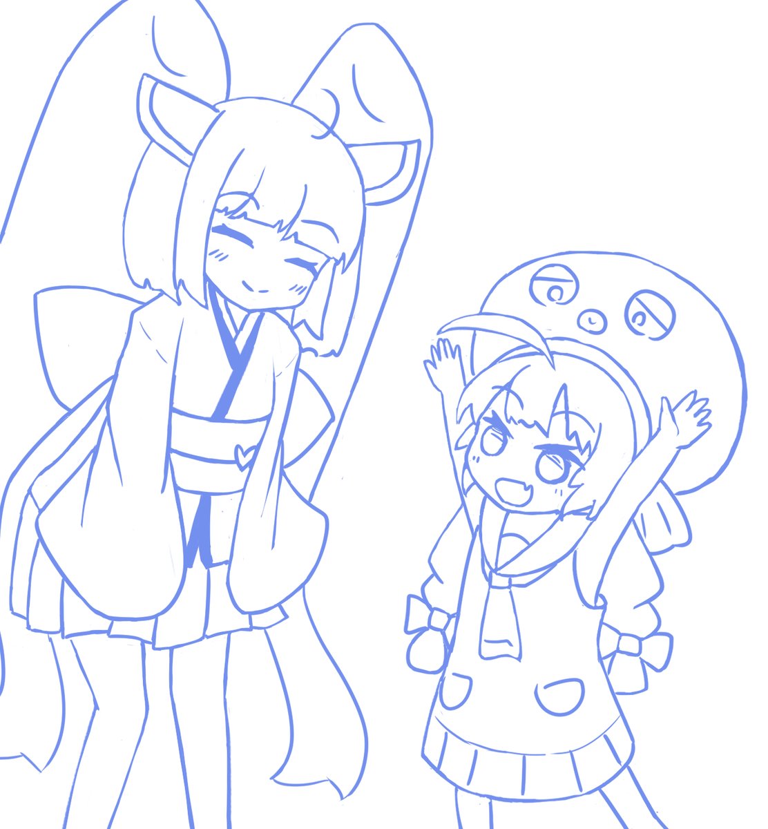 体育の授業とかでやった「前ならえ」っていったい何者だったんだろうね。 そんなことを考えながら描いたアオリ構図練習きりたん