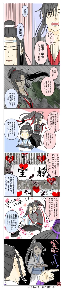174 629 忘羡の喧嘩に巻き込まれる江澄(一瞬背後注意とみせかけてよく分からないコマがあります) 20/05/11 19:40
