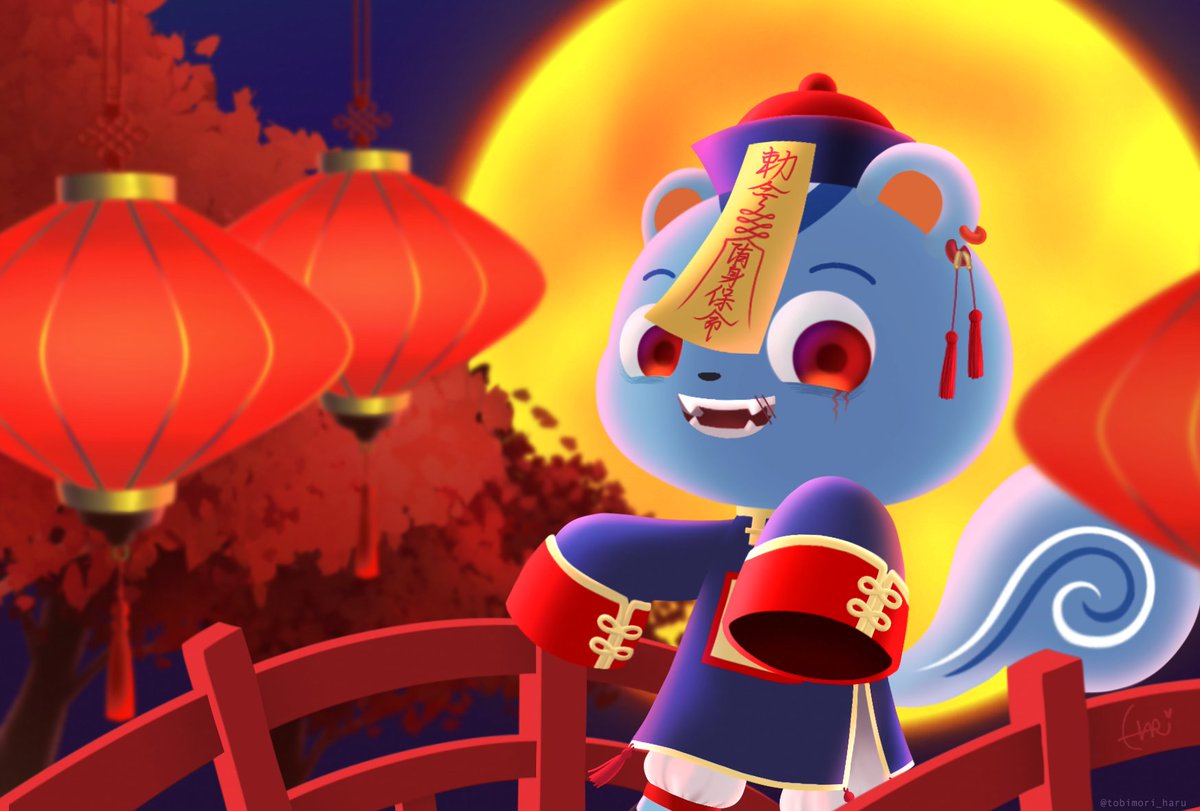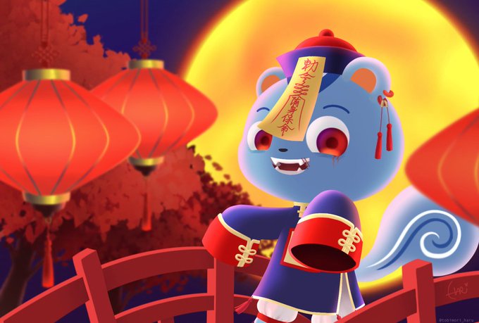キョンシーは満月の夜に ── #どうぶつの森 #どう森美術部 #AnimalCrossing #ACNH #ハロウィン #キョンシー #リッキーくん