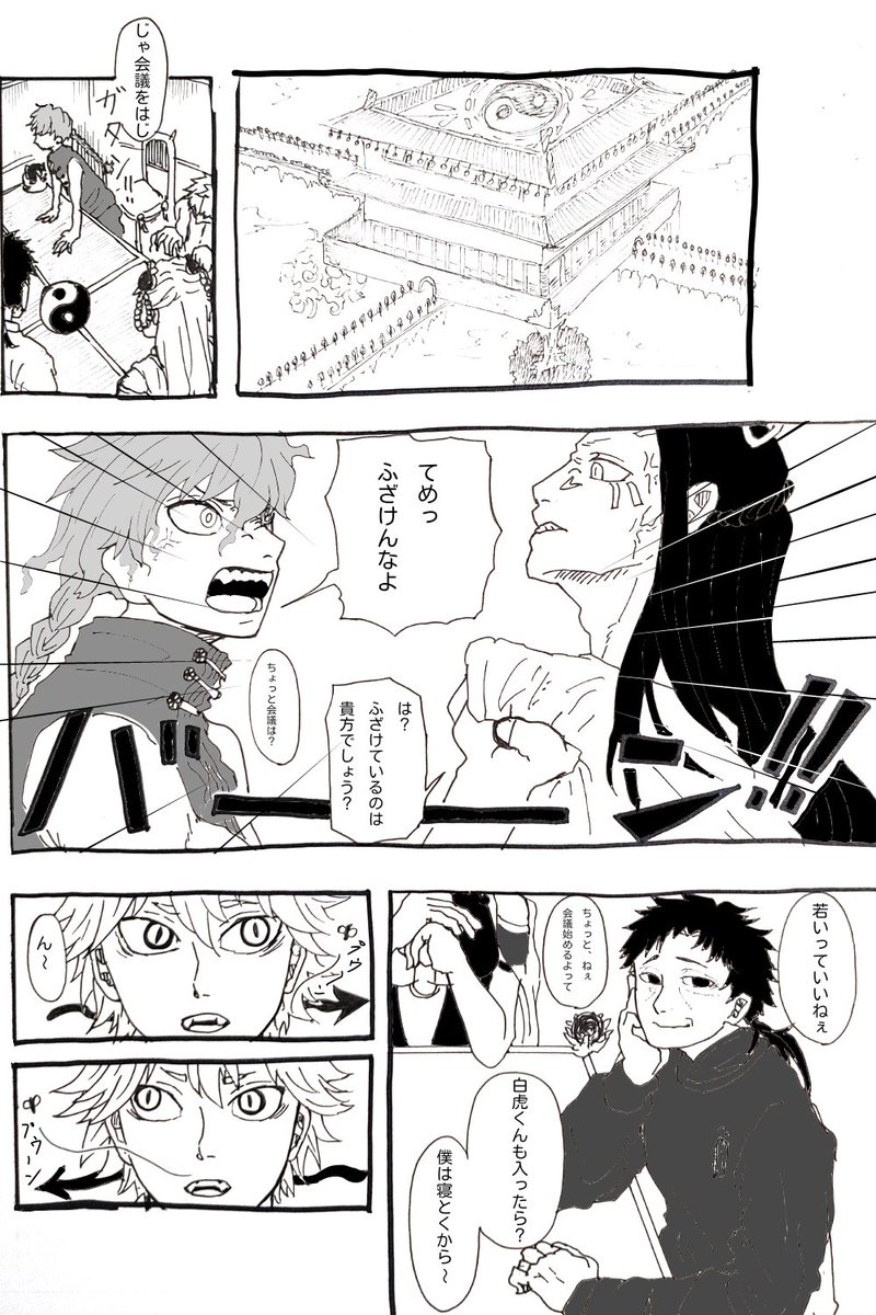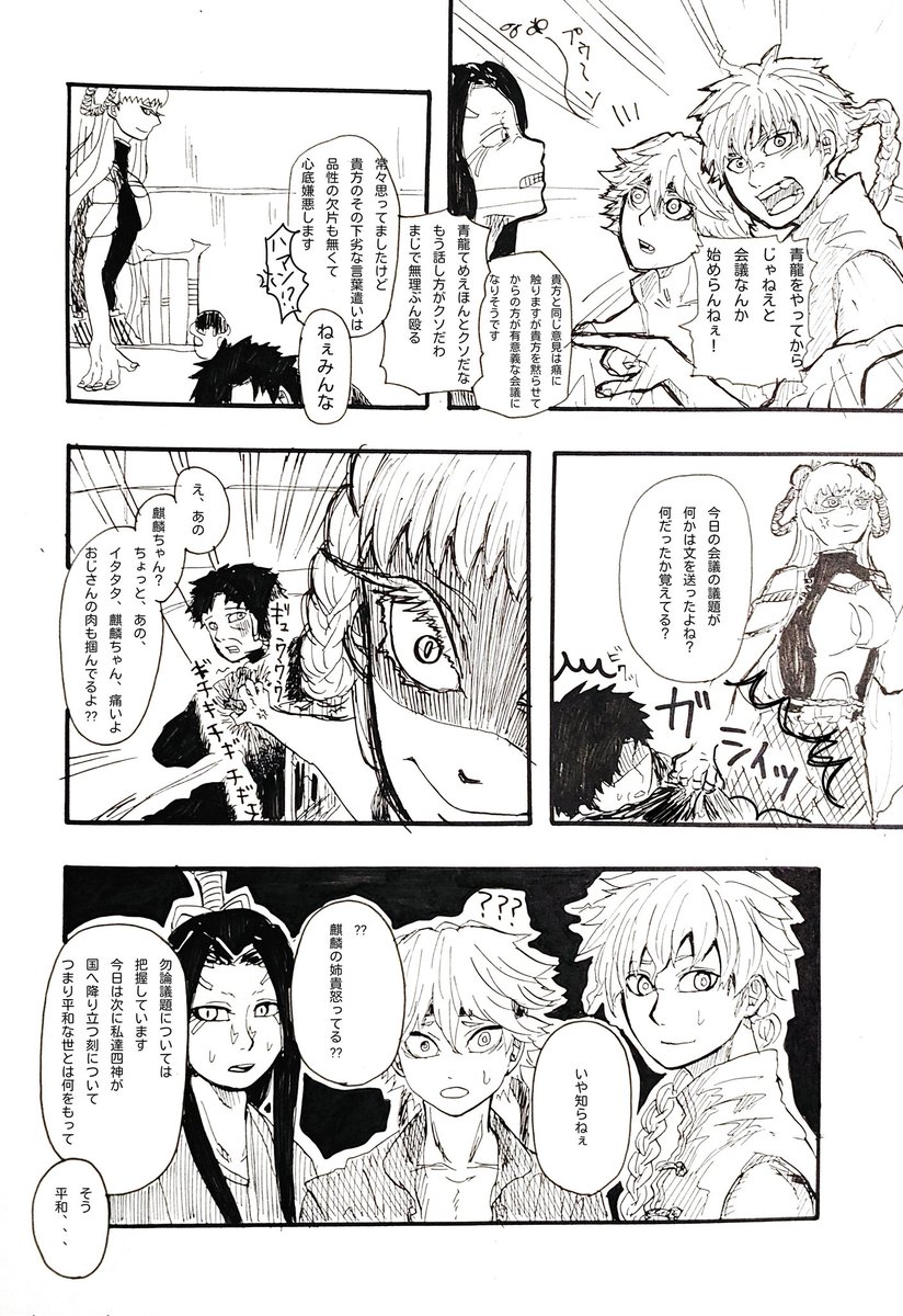 188日目。 また明るい部屋で寝落ちてました😂 毎回完成させると安心してぐっすりと💤 前言ってた四神会議、漫画にしたら1ページじゃ無理でした、雑🤭 今日は時間あるからもう少し丁寧に描きます😂 #漫画好きな人と繋がりたい #絵描きさんと繋がりたい #一日一絵