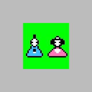 カナヘイさんのピスケとうさぎ。ピスケのクチバシの黄色を使うためにほっぺを濃いピンクにせざるを得なかった。 #ドット絵 #pixelart #edgetouch #ファミコン風ドット絵 #ピスケとうさぎ #カナヘイ