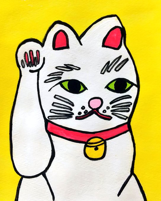 2 19 招き猫リメイク #アクリル画 #コラージュ #まねきねこ 22/12/08 23:28