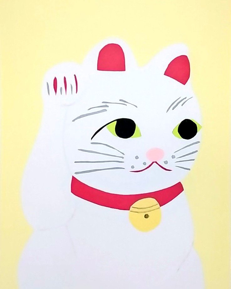 招き猫リメイク #アクリル画 #コラージュ #まねきねこ