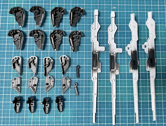 #今年作ったプラモ晒そうぜ この子達とRGνガンダム。 ほぼMGしか作って来なかった私に、 パーツを塗り分けて完成させる楽しさを教えてくれたシリーズでした。 数だけは1番完成させた年です。