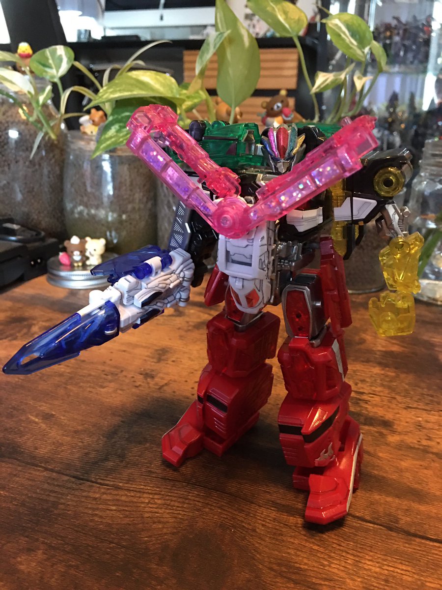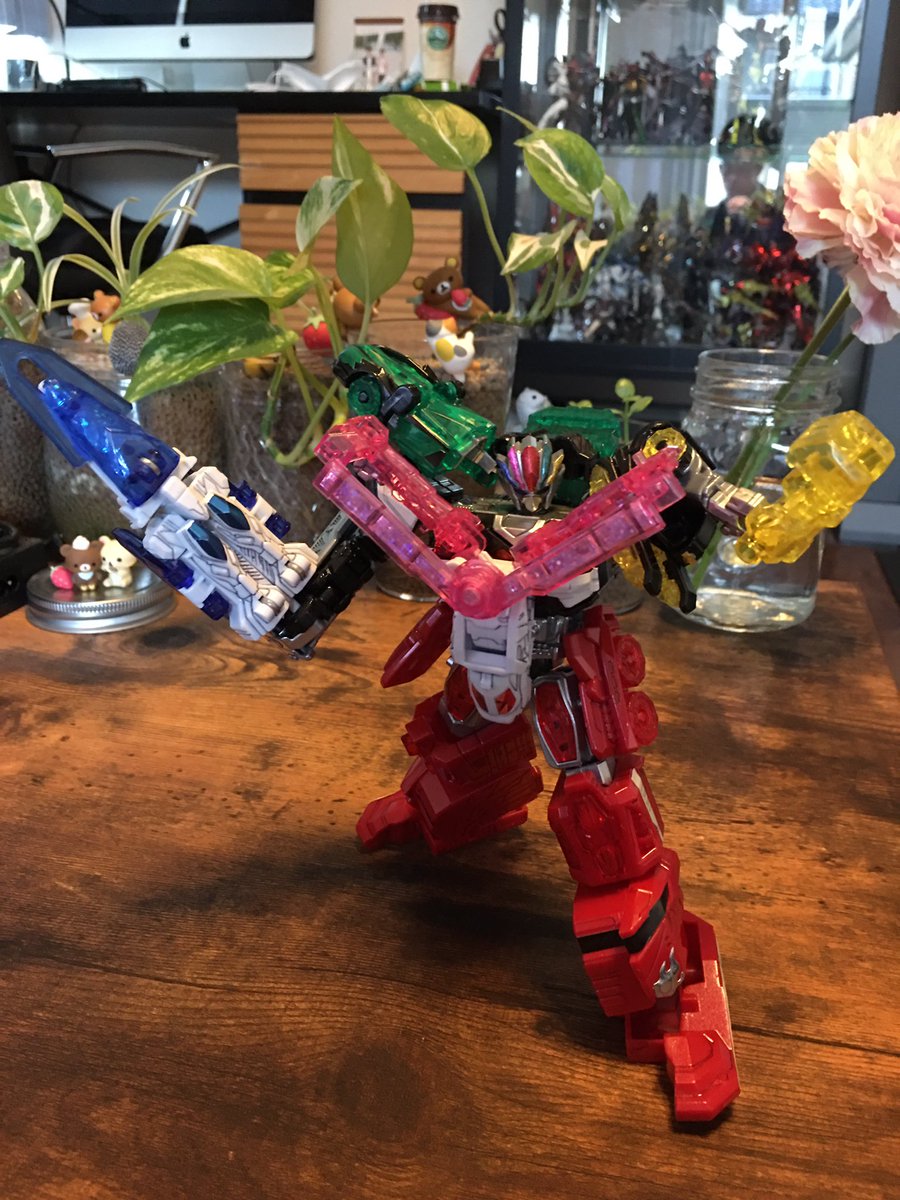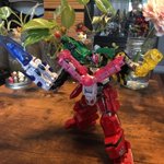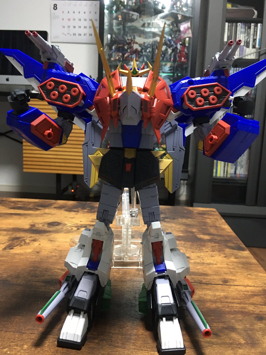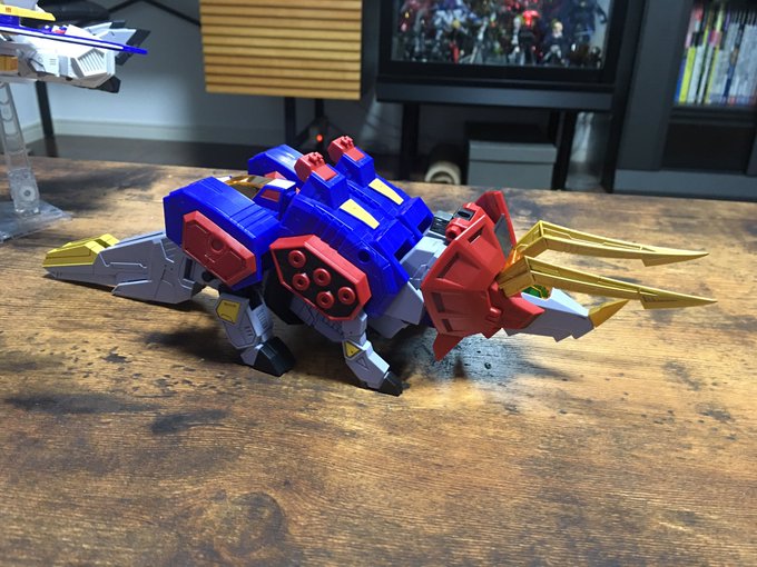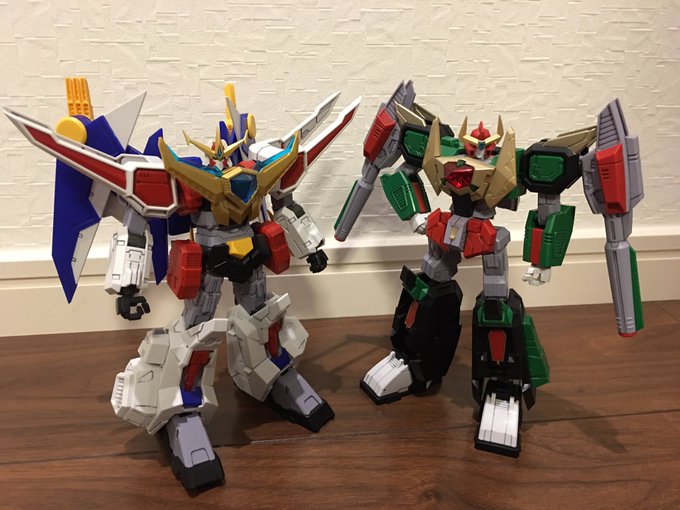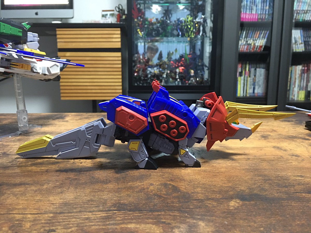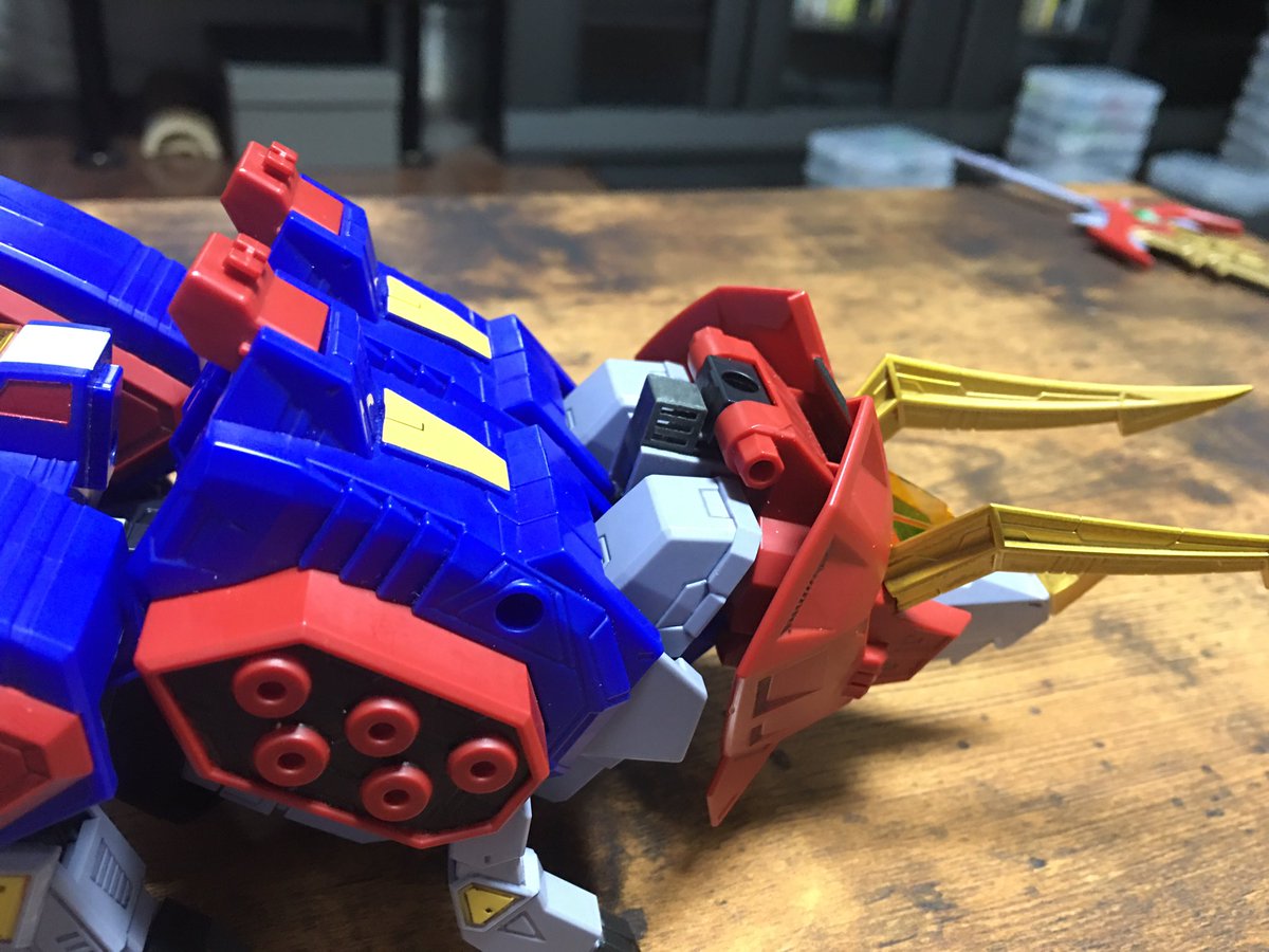 #キングゴウザウラー プロポーション改善。before← →after 主に1円さん(@ichien_)の改造を参考にさせていただきました。腕の接続位置を内側に、胴体の合体法を変更し全長を短縮しました。膝も縮めて貧弱感を和らげてます。 #熱血最強ゴウザウラー #バンダイ #HG #プラモデル #オモ写