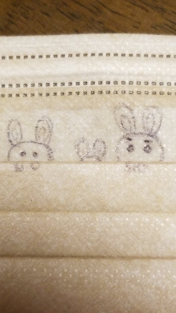 ウサギの親子。 マスクのお布団でおやすみなさい zzz #落書き #イラスト #マスク #おやすみなさい (まだ寝ないけど)