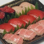 83 522 マグロづくし作りました🍣 手前から中トロ、赤身、マグロ軍艦、大トロです。やはりマグロの部位ごとの表現は難しいですね🤔 #ミニチュアフード #ミニチュア 20/11/26 18:08