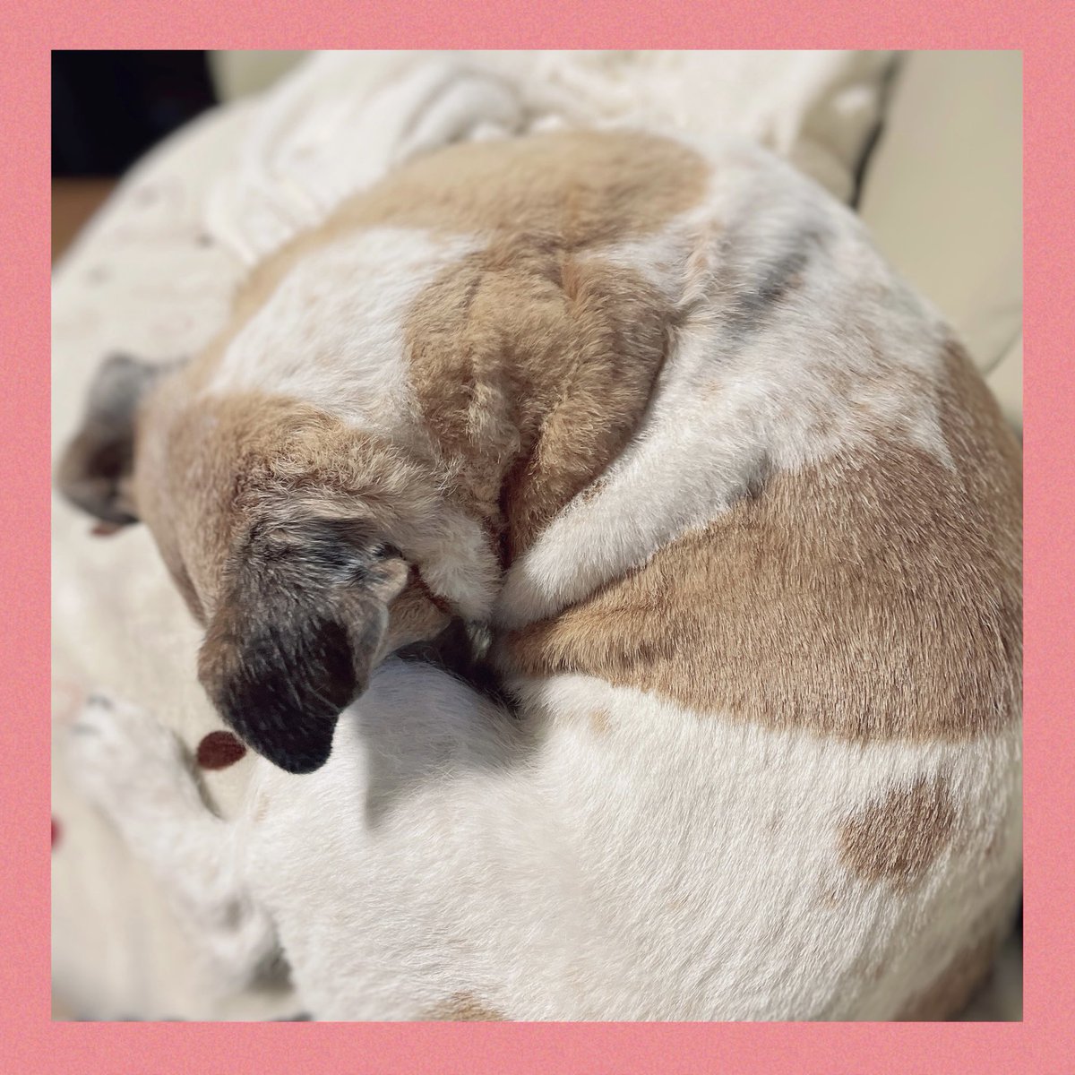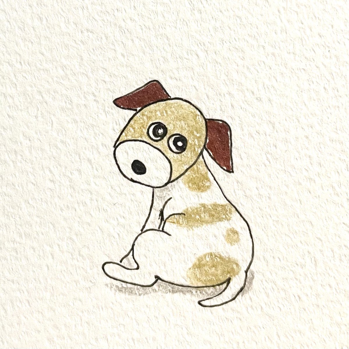 寝ているトトの後ろ姿が可愛くて大好きです🐶🥰 丸みを帯びたフォルムといい、少したるんだ首の皮といい、無防備な手足といい…最高に可愛いです❤️ みんなの可愛い後ろ姿も見せてね🐶🐶🐶 #jackrussellterrier #jrt #ジャックラッセルテリア #イラスト #手描き #犬 #後ろ姿