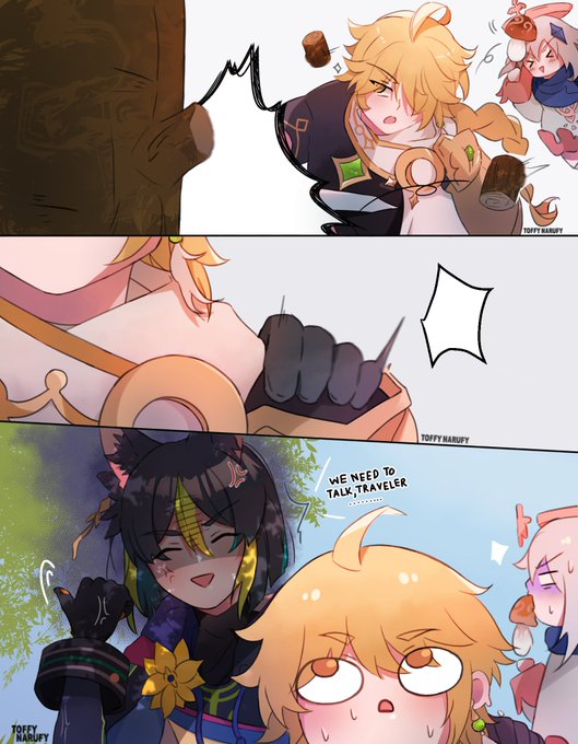 Guess she can't HANDle it. 😂😂😂 #genshinimpact #genshin #genshinimpactfanart #alhaitham #kaveh #cyno #tighnari #原神