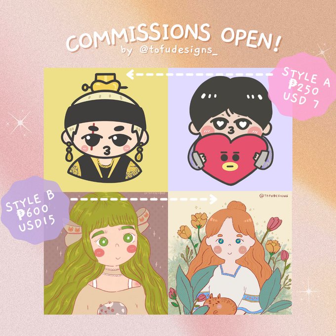 Tofu here, a filo artist from the ph! 🌷 I'm opening art commissions again to help me fund my tuition for next sem. ideally for icon, pfp, phone wallpaper requests! 🤍 details in replies 🤍 dm to get a slot 🤍 rts, bumps are appreciated t. lf wm comms #artph #commissionsopen