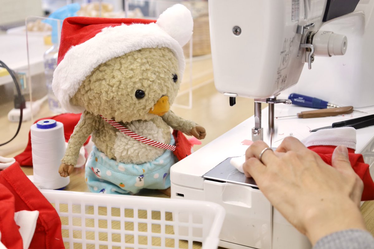 / サンタズボンの、かんせい! \ ぶじに、サンタズボンが、かんせいしました! ぬいぐるくん、モデルのおしごと、おつかれさま! こうぼおのスタフのみなさん、ぼくにピタリの、カコいいズボンを作てくれて、ありがとございます! 👖ヒミツのこうぼお👖 hana-work.net