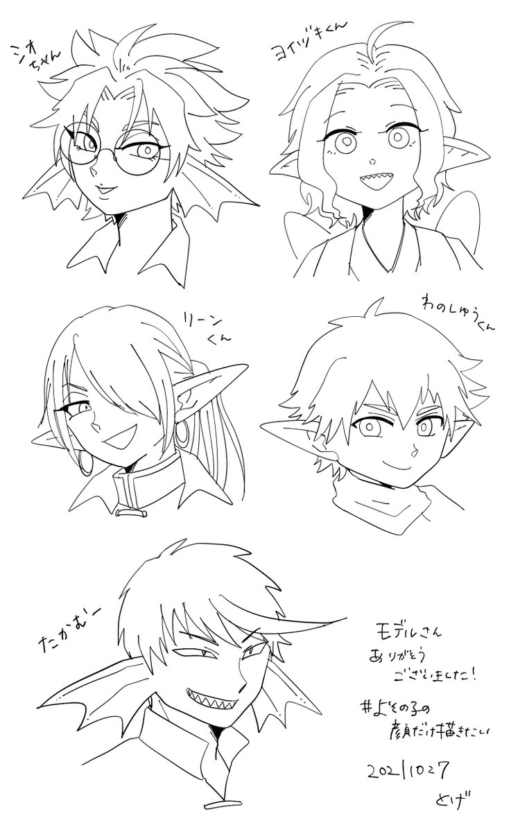 #よその子の顔だけ描きたい 描かせていただきました🙏楽しかった!!!線画止まりですみません!自キャラさんなら塗り絵しても大丈夫です…!(むしろ塗り方を教わりたい) twitter.com/toge0521/statu…