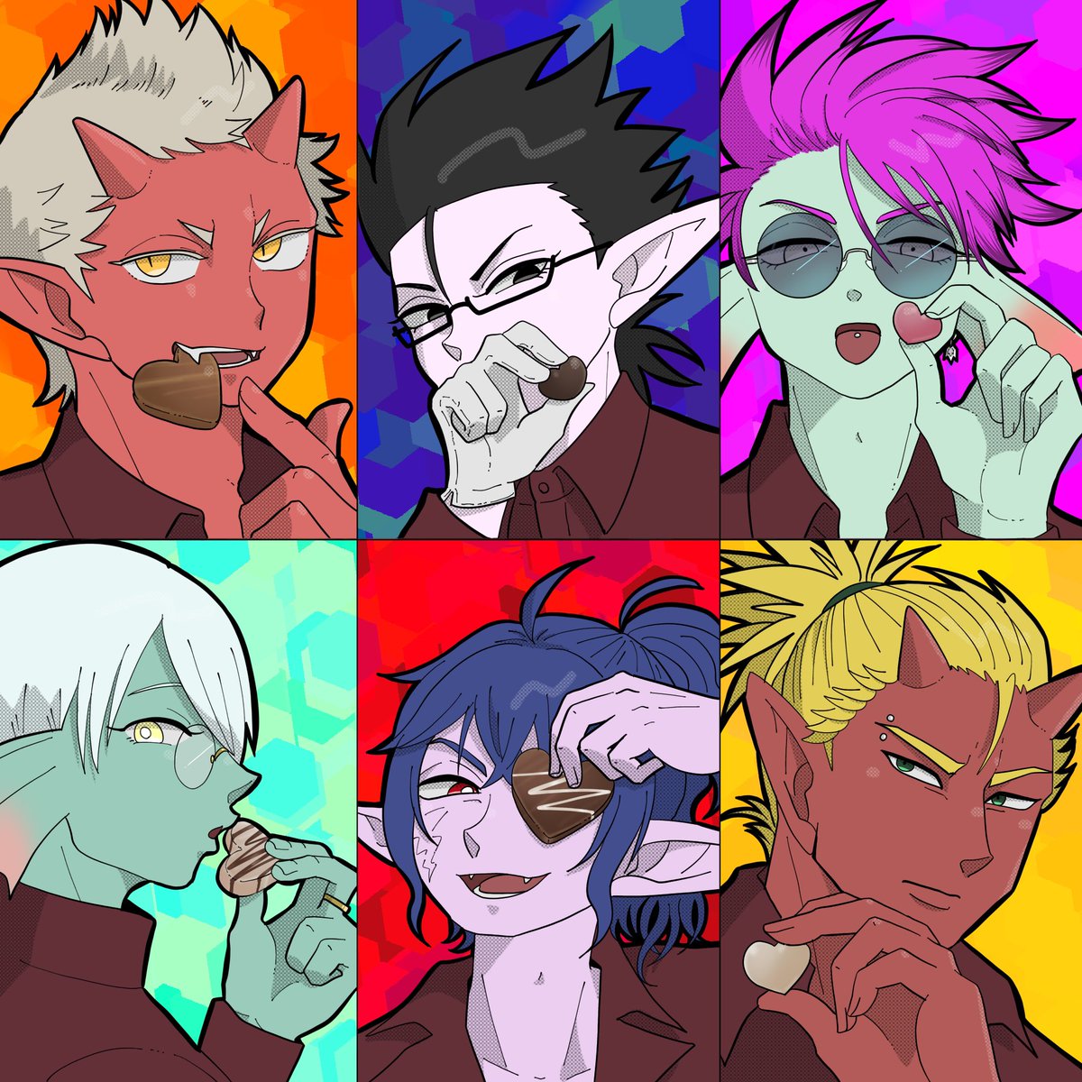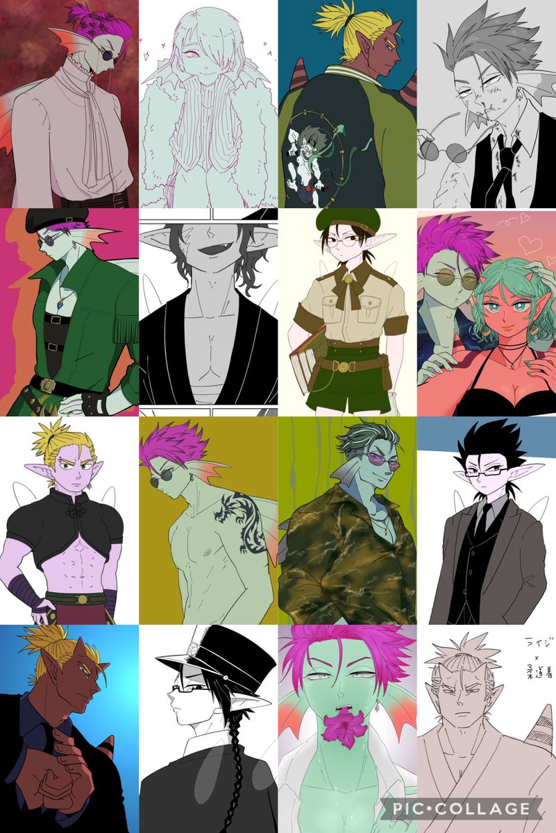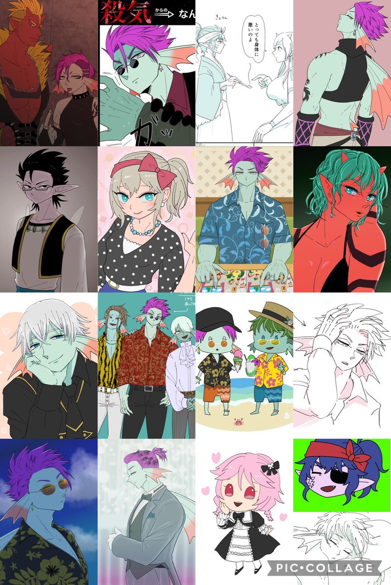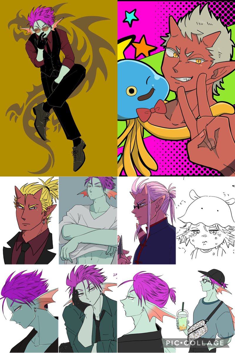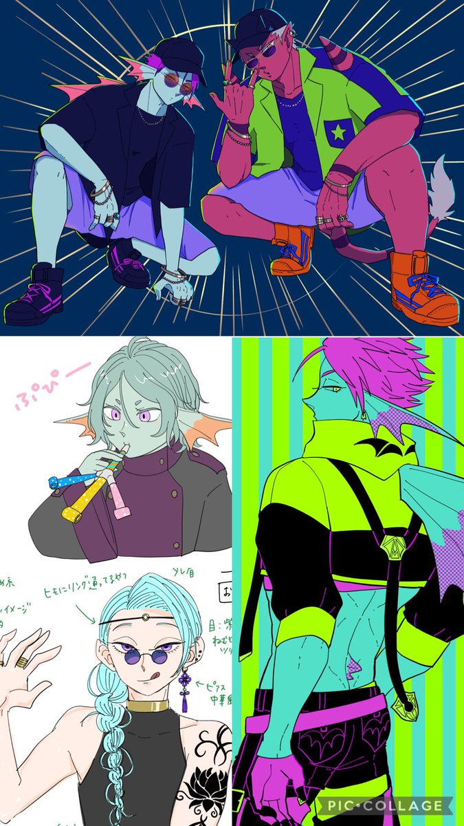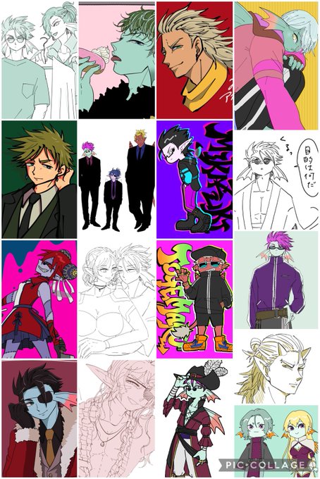 #この子のキャラデザだーれだ 共通お題でキャラデザした子をシャッフルで描きました💪 私が描かせてもらったのは④ちゃん!(添付2枚目が全体図)さて私のデザインした子はどの子でしょう〜☺️ よかったらツリーのアンケ(①〜⑩)から選んでポチしていってね✌️