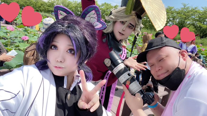 cosplay/kmt/⚠️#__doushino 🌈と🦋で蓮撮影いてきた! 暑いし朝早かったけど楽しかったし 念願の!童しのちゃんで蓮撮影 疲れすぎてみんなバスでねちゃうww これからアフター!! 🌈sei @yuki34sei 📷川村氏 @gokigen_camera
