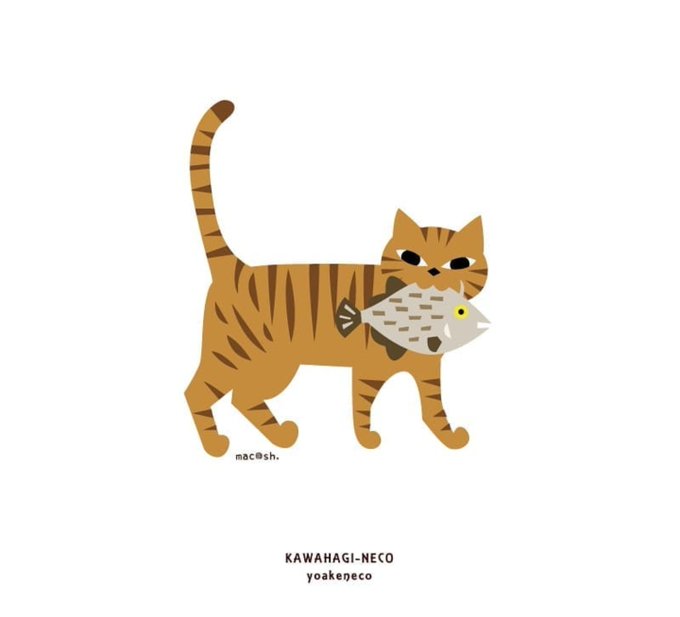 27 185 石巻の猫好きのための民泊「よあけの猫舎」。昭和レトロな一軒屋でかわいいにゃんこたちがお出迎えしてくれます。そんな素敵な宿の猫グッズ用イラスト。海の幸をくわえた猫です。 今日はカワハギをくわえたとらねこ。 #イラスト #猫のいる暮らし #魚好き #illustration #drawing #石巻 23/03/04 18:27