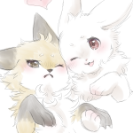 「うさぎちゃんはいいな、おっきいくりくりのおめめ、ふわふわのおてて、真っ白なからだ…全部とっても可愛いんだもん…」 「あら、うれしい! でも、わたしは、きつねちゃんの凛々しいおめめ、しゅっとしたおてて、金色のからだ、全部とっても綺麗で好きよ」 「ほんと…?」 「ほんとよ。うふふ」