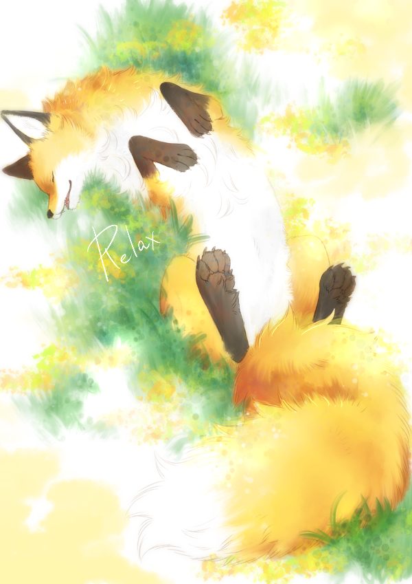 リラックスすやすやきつね春の眠りお腹大放出🦊🌸