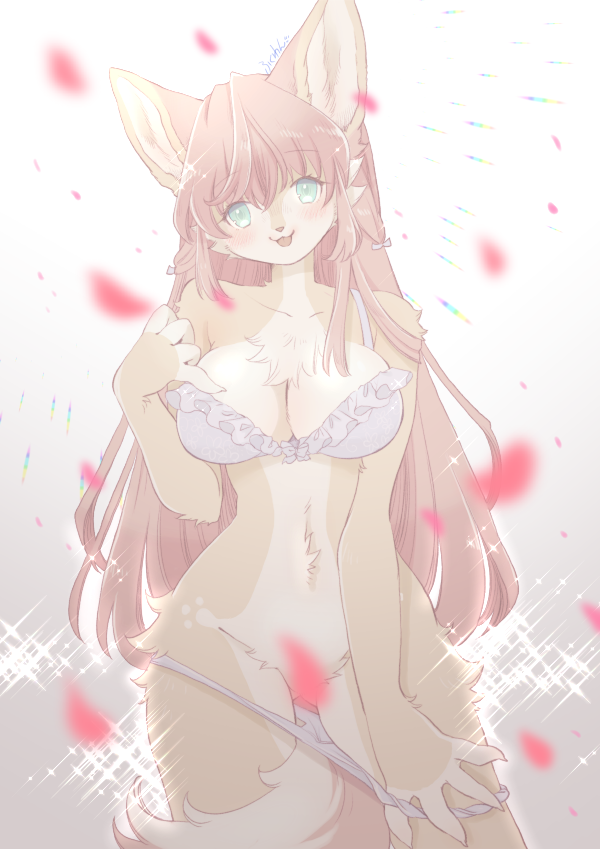 「少し、体が火照ってきてしまって……。あの……こちらで一緒に……。その……全部脱いで……わたしと遊びませんか……? お嫌じゃなければ……」 普段はとてもおとなしくて引っ込み思案な、狼のルルアちゃんは時々とても積極的。