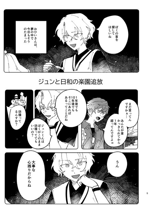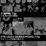 10 32 【8/20大阪ブリデ新刊サンプル②】【⚠️死ネタ】(1/5) 「ジュンと日和の楽園追放」 A5/64p/¥700 死の絡むシリアスなEveの短編3作(web掲載物の再録2本+新規描き下ろし1本)が収録されています。 それぞれの詳しい内容はツリーに繋げます。 23/07/13 17:53