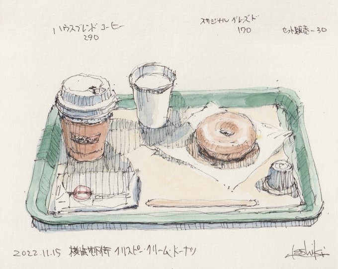 1 14 水彩スケッチ 食べ物シリーズ 「クリスピークリームドーナツ」F0 20221115 横浜駅地下街でふと立ち寄ったクリスピークリームドーナツ。簡単スケッチしてからいただきました。(着彩は帰宅後) #水彩画 #スケッチ #ペン水彩画 #透明水彩 #クリスピークリームドーナツ #横浜駅地下街 23/07/16 05:39