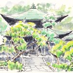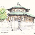ペン水彩画スケッチ 奈良の風景 「興福寺南円堂」F0 20110818 世界遺産に登録されている興福寺。 南円堂は日本最大級の木造八角円堂。 2011年夏のスケッチ。 #水彩画 #ペン水彩画 #透明水彩 #奈良 #興福寺 #南円堂 #世界遺産