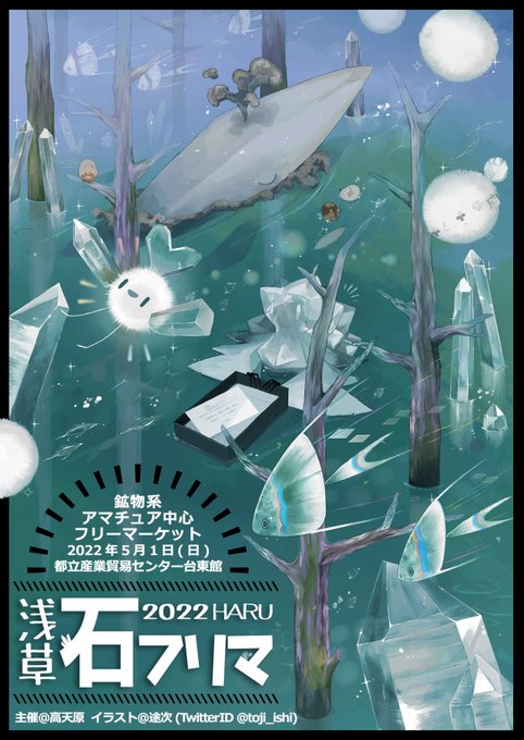 #ゴールデンウィークSNS展覧会2022 石を見て感じたわくわくを、絵で伝えたいな。と、最近は石をモデルにイラストを描いて、時々グッズも。 明日開催の「石フリマ」さん(@isi_fleamarket )チラシを担当させて頂きました。当日ポスターとしても使って頂きます!