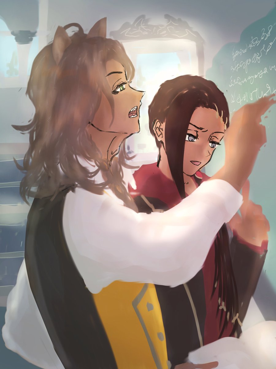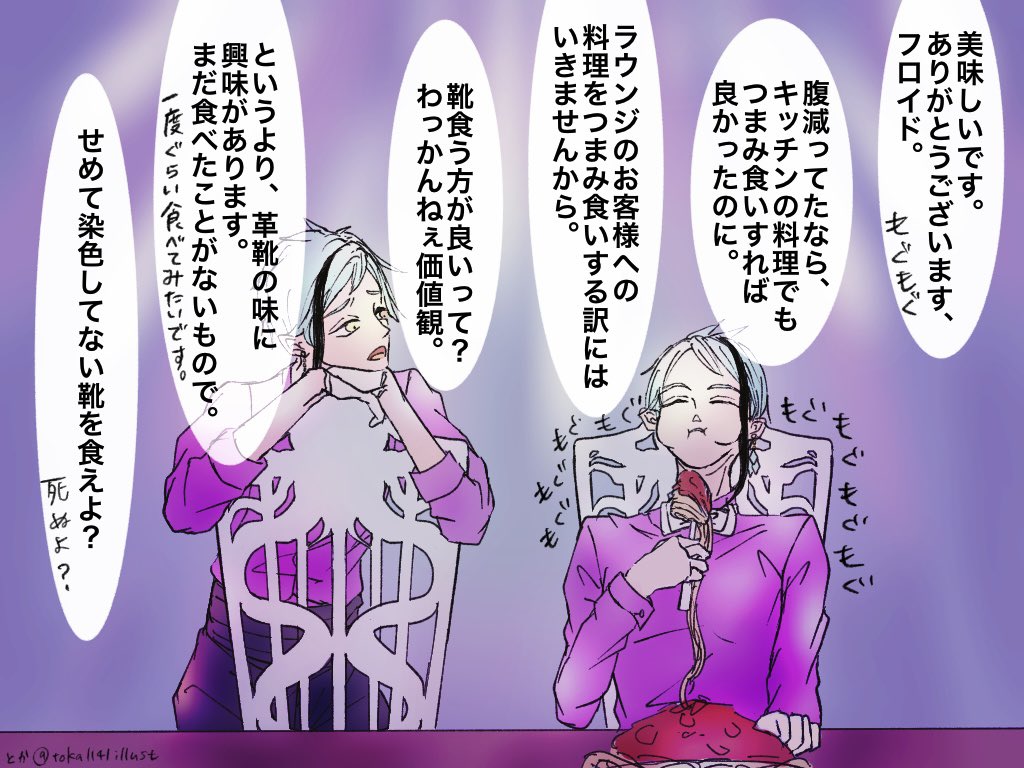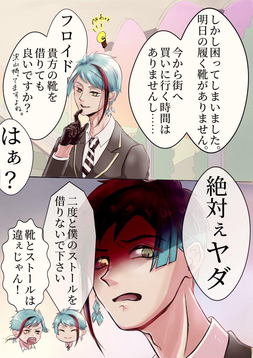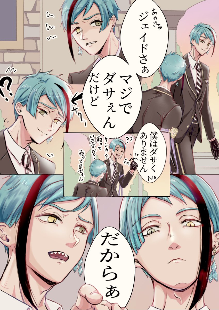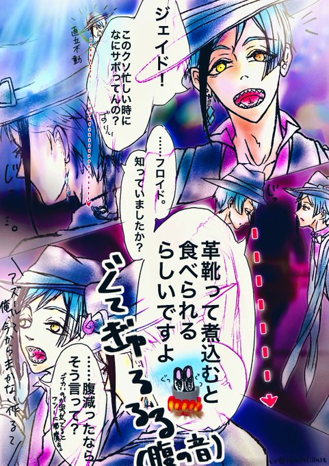 #twstファンアート 一日上達法の本日の成果物〜(🐚寮編) 1.ノースリーブハロウィンフロ🦈描きたい 2.海中の勢いでジェ🐬に飛び付いたら重力が有り余った🐚寮つむつむ 3.王国心っぽい双子イラスト描きたい 4.🐬「美味しそうですね」