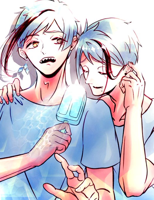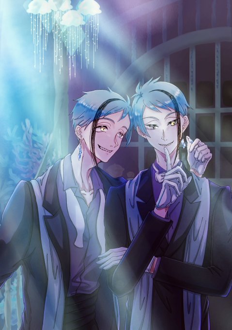 #twstファンアート 6/30は人魚の日〜🙌/人魚🐬(+🦈) ーー フッと吹き掛けたバブルリングが兄弟に当たって、パッと弾けた。 ーー リチ誕に上げた小説(リプ)のイメージで☺️ ずっとこの場面見たかったので自給自足