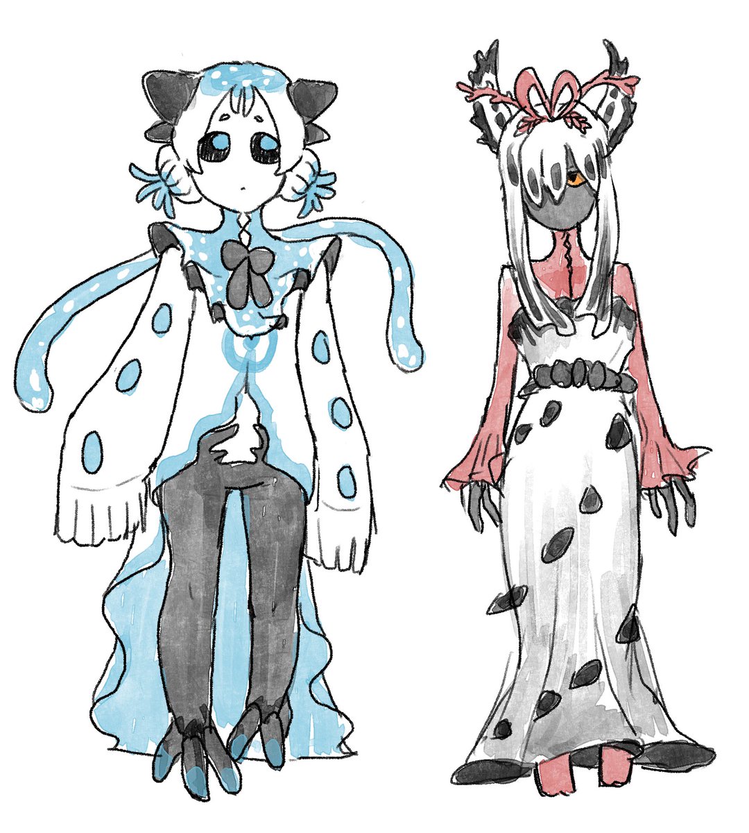 ムグアルキッズらくがき(少女の姿) ママ似のお姉ちゃんとパパ似の妹というあれそれ ソーダとコーラかも🥤
