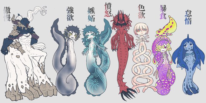22 50 #とかげの月 月での遺伝子実験にて生み出された肉の者7兄弟です🐙 7つの大罪モチーフ!各人の詳細はまたいずれ 22/07/21 01:02