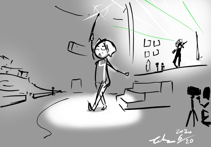平沢進ライブ後に夏色まつりライブを連続で観たため、トリの曲で歌いながらチェーンソー振り回して舞台を破壊するまつりが見えたので描きました。(キャラ的にありえそうなんだよな…) #夏色まつり2周年LIVE #祭絵