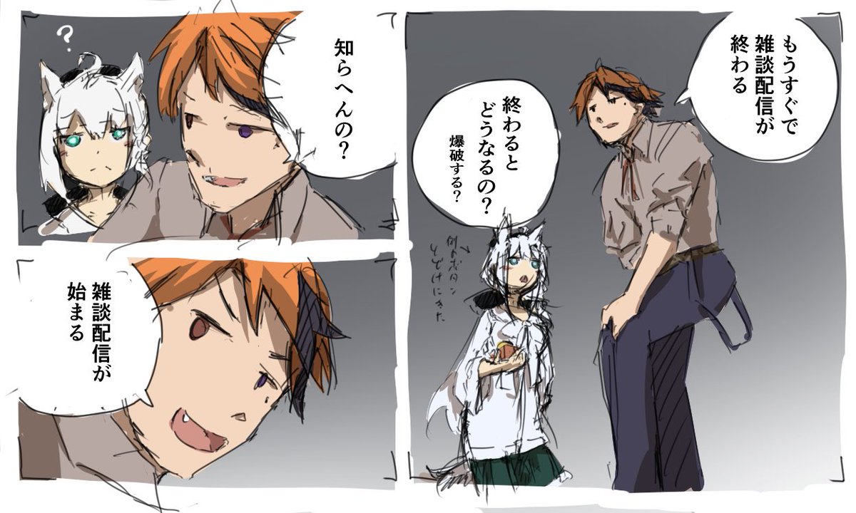 個人勢のままだったすいちゃんが龍と天使に突然出会うホロの無いオルタナティブの世界 (を思いついたのでネーム描いてみた。…ラフで終わりだよ?) #勝手にホロメンオルタナティブ #ほしまちぎゃらりー #かなたーと #みかじ絵 #AZKiART