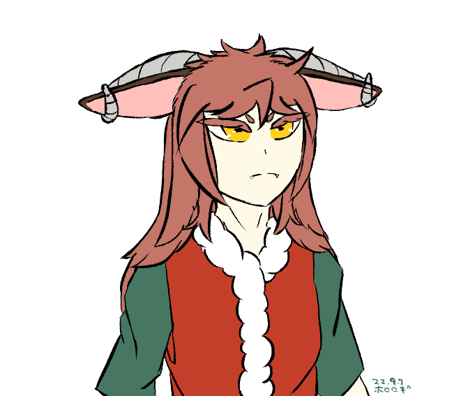 クモエも片目が隠れています。髪の下は狼の顔です。 ウラルは初めて描いた時から目つきが丸っこくて性格が出てます。 去年は黄昏君でした。 #オリジナル #創作 #一日一絵 #イラスト #pixiv今日のお題 #クリスタ #CLIPSTUDIO