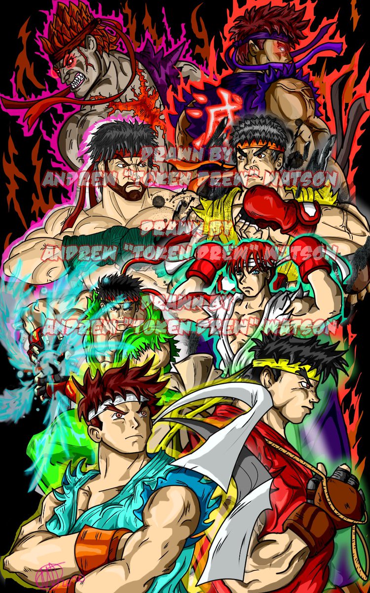 A Ryu Tribute picture I did. I tried to include variations from every game. Using some free time to get better. What do you think? #streetfighter #evilRyu #Ryu @daffduff_art #SixFanarts