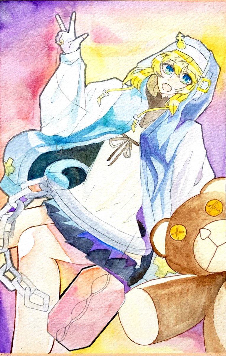 #ルーレットで絵を描こう ゴースト×星×青 「僕は彼女を忘れられない。」 ゴーストは描いたことがあまり無いのでキャラデザからしました。 ゴーストなのに明るくていいのか……と出来てから少し悩んでました。