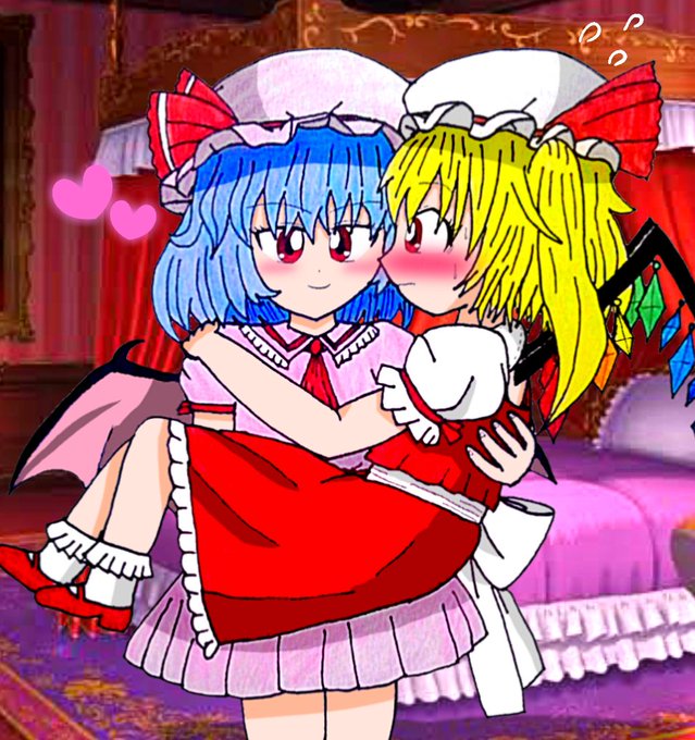 「フラン…良い子はもう寝る時間だから、私が部屋まで抱っこしてあげるわ♡」 #東方Project #touhou #レミリア・スカーレット #フランドール・スカーレット #レミフラ #イラスト