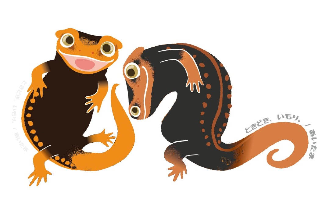いろんなカタチのアカハライモリ変形ポストカードを作ってみました!可愛くできて満足です🥰 #アカハライモリ #イラスト