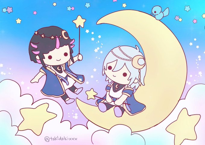 292 1520 今日は七夕なので、以前自分用に描いてた某双子風の紅銀親子のせときます〜〜 ⭐️🎋💫 23/07/07 20:26