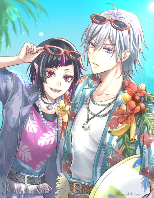 紅銀親子スイスイ🌺 #twstファンアート